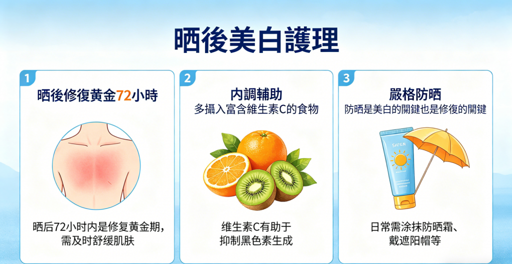 皮膚曬黑後想要快速變白,需要採取分階段、綜合性的護理方法。